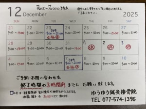 2025年11月30日(日)~12月20日(土)の施術予定時間