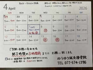 2026年3月29日(日)~4月18日(土)の施術予定時間