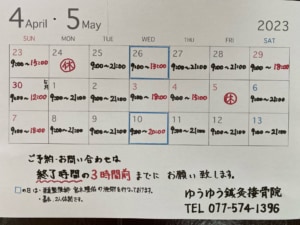 2023年4月23日(日)~2023年5月13日(土)の施術時間