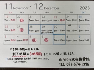 2023年11月19日(日)~2023年12月9日(土)の施術時間