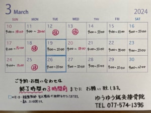 2024年3月10日(日)~3月31日(土)の施術時間